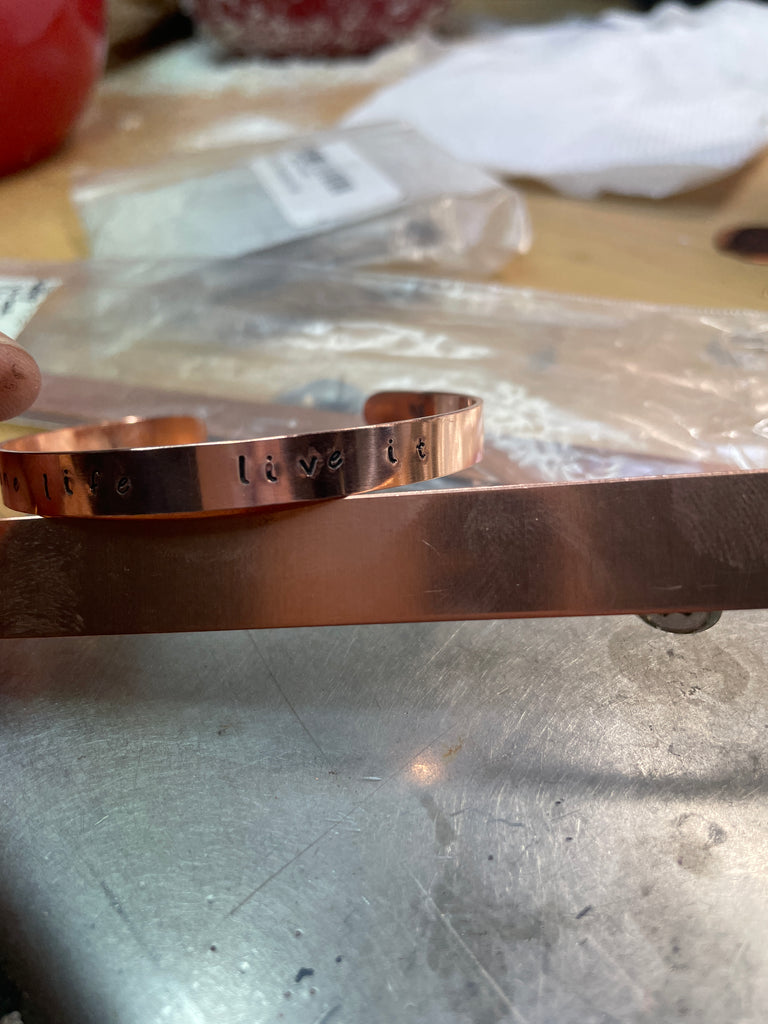 Copper cuff bracelet "One life Live it"